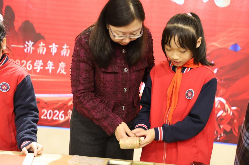 学校师生代表共同体验传统拓印技艺,亲手拓印马年祝福。在非遗传承中凝聚师生同心,寄托新学期笃行共进、逐光前行的美好愿望。