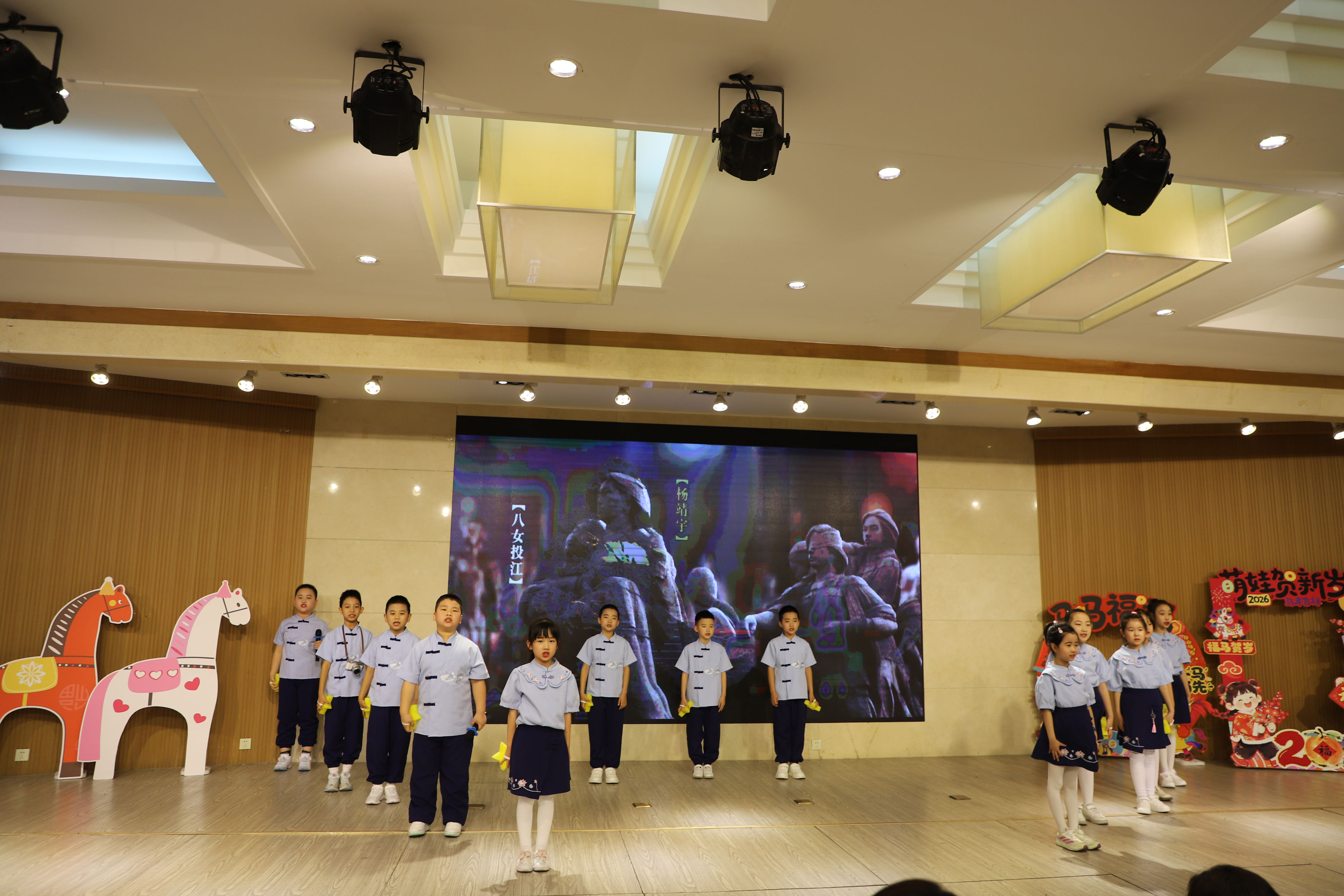 模特与书法社团学子携手登场,手持 “龙马精神” 等吉祥墨宝精彩展示,学生代表以诗明志,抒发驰骋学海的豪情。